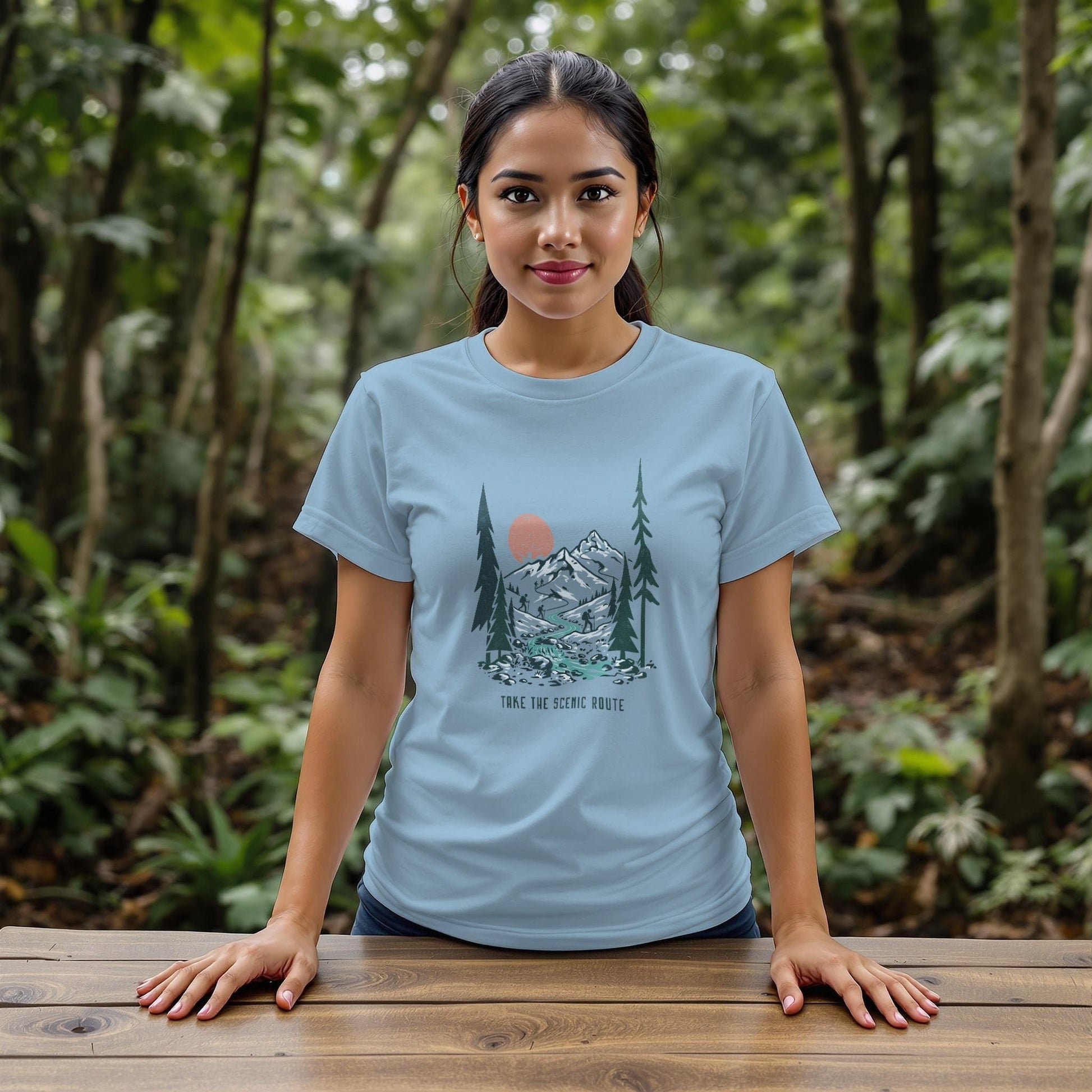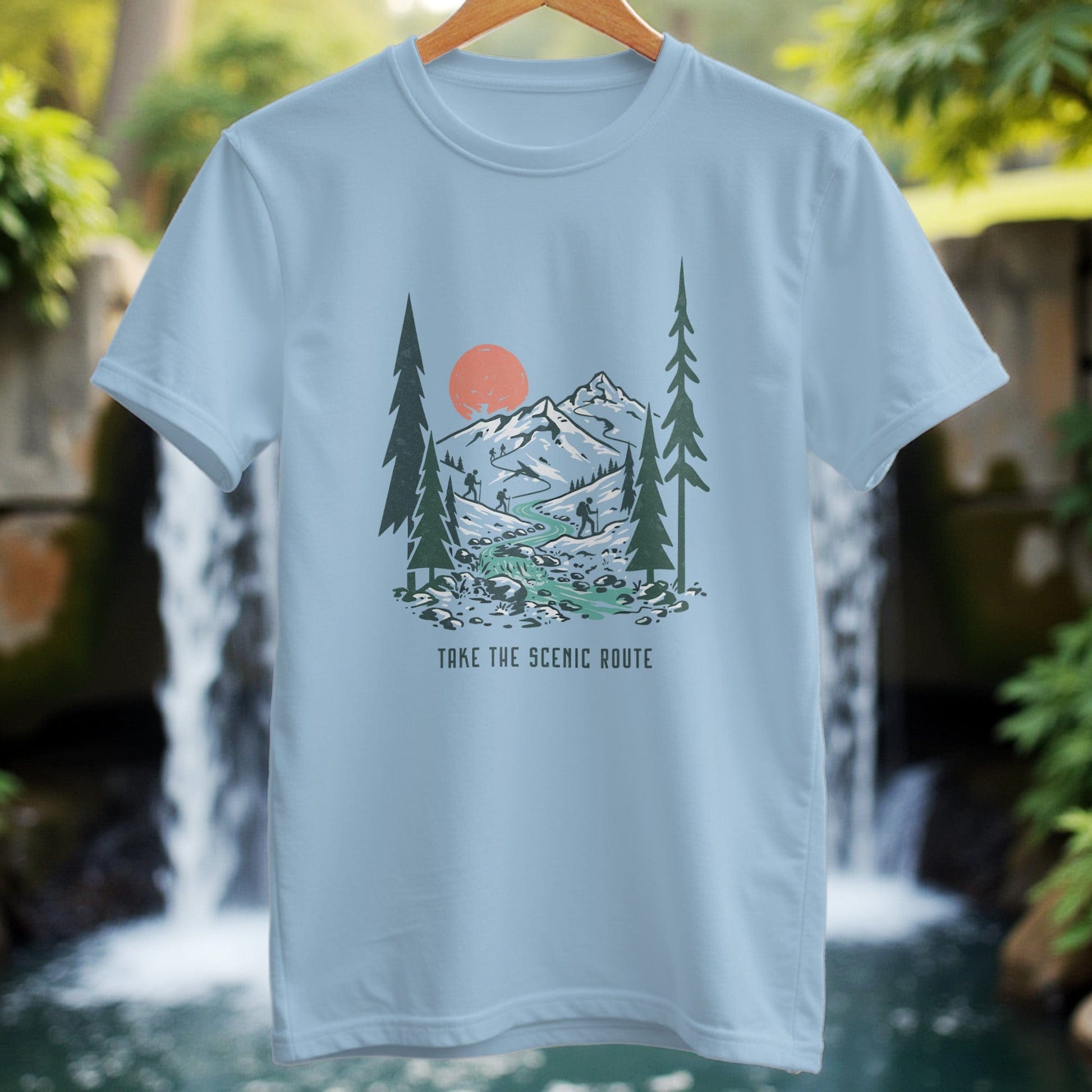 Adventure-themed Take The Scenic Route Graphic T-Shirt designed for hikers with graphics of backpacking trails. This soft and durable T-Shirt is perfect for outdoor enthusiasts looking for comfortable and stylish apparel to wear on their adventures. Ideal for adults who enjoy hiking and outdoor activities, this T-Shirt is suitable for casual wear and can be worn during outdoor activities and travels.